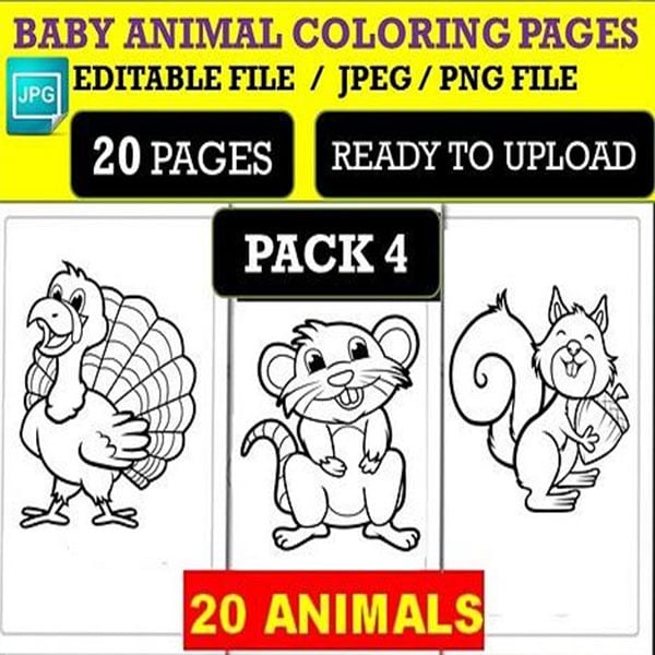 20 COLORING PAGES – BABY ANIMIAL COLORING BOOK INTERIOR