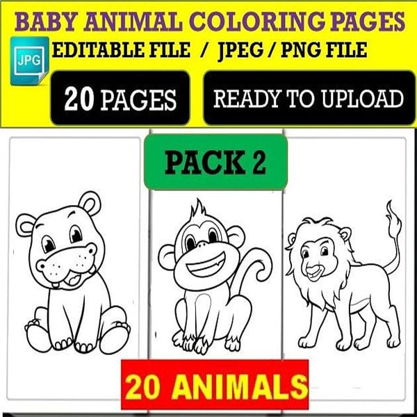20 COLORING PAGES – BABY ANIMIAL COLORING BOOK INTERIOR